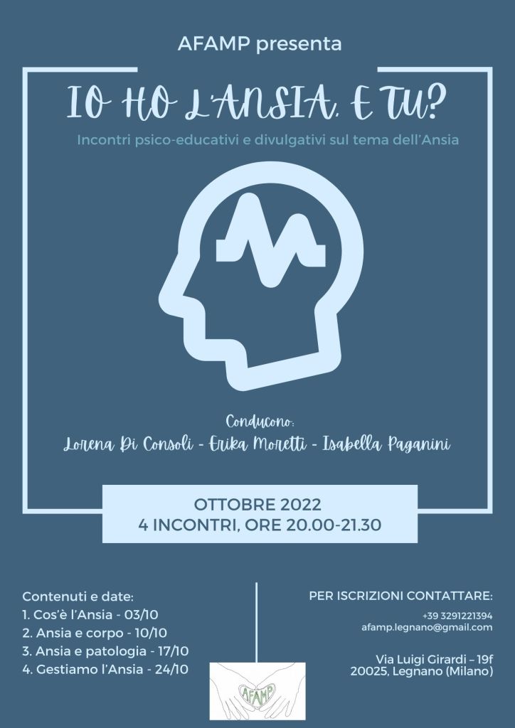 Cicli di incontri psico-educativi e formativi sul tema dell’ANSIA, condotti da professioniste della salute mentale ed aperti a tutti gli interessati, interni ed esterni all’Associazione.